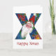 X LETTER / SANTA CLAUS WITH RED RIBBON MONOGRAM HOLIDAY CARD