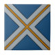 This tile features a graphic "X" design in yellow ochre and pale gray-blue outlined in black, with a deep blue background.