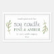 Extra large modern, rustic and simple organic homemade soy candle label with the text made with love, soy candle, your customised scent (pine & amber) and your business name in off-black elegant handwritten script and modern typography on a white background with a stylish touch of rustic pine sprig foliage. Simply add your information to the label and you're ready to sell your beautifully handcrafted artisan soy candles! Exclusively designed for your small business by Happy Dolphin Studio. If you need any help or matching products, please contact us at happydolphinstudio@outlook.com.