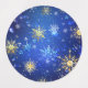 Blue Christmas background with gold and white jewellery snowflakes. Golden snowflakes. XMAS.