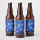XMAS Blue Background with Golden Snowflakes Beer Bottle Label