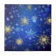 XMAS Blue Background with Golden Snowflakes Ceramic Tile
