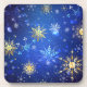 XMAS Blue Background with Golden Snowflakes Coaster