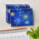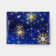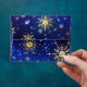 Blue Christmas background with gold and white jewellery snowflakes. Golden snowflakes. XMAS.