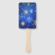 XMAS Blue Background with Golden Snowflakes Hand Fan