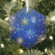 XMAS Blue Background with Golden Snowflakes Label Glass Tree Decoration