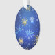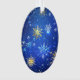 Blue Christmas background with gold and white jewellery snowflakes. Golden snowflakes. XMAS.