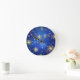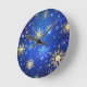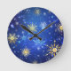 XMAS Blue Background with Golden Snowflakes Round Clock