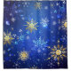 XMAS Blue Background with Golden Snowflakes Shower Curtain