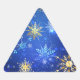 XMAS Blue Background with Golden Snowflakes Triangle Sticker