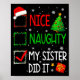 Xmas Family Nice Naughty My Sister Did It Santa Ch Poster