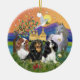Xmas Fantasy-Three Cavalier King Charles Spaniel Ceramic Ornament