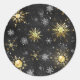 Xmas Golden Snowflakes on Black Background Classic Round Sticker
