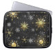 Xmas Golden Snowflakes on Black Background Laptop Sleeve