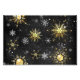 Black Christmas background with gold and black jewellery snowflakes. Golden snowflakes. Xmas.