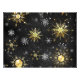 Black Christmas background with gold and black jewelry snowflakes. Golden snowflakes. Xmas.