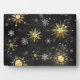 Black Christmas background with gold and black jewellery snowflakes. Golden snowflakes. Xmas.