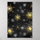 Black Christmas background with gold and black jewellery snowflakes. Golden snowflakes. Xmas.