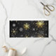 Black Christmas background with gold and black jewellery snowflakes. Golden snowflakes. Xmas.