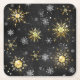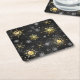 Xmas Golden Snowflakes on Black Background Square Paper Coaster