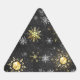 Xmas Golden Snowflakes on Black Background Triangle Sticker