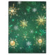 Green Christmas background with gold and green jewellery snowflakes. Golden snowflakes. Xmas.