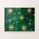 Xmas Golden Snowflakes on Green Background Jigsaw Puzzle