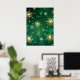 Green Christmas background with gold and green jewellery snowflakes. Golden snowflakes. Xmas.