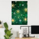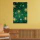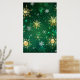 Green Christmas background with gold and green jewellery snowflakes. Golden snowflakes. Xmas.