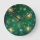 Green Christmas background with gold and green jewelry snowflakes. Golden snowflakes. Xmas.
