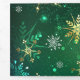 Xmas Golden Snowflakes on Green Background Tri-Fold Holiday Card