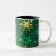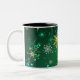 Xmas Golden Snowflakes on Green Background Two-Tone Coffee Mug
