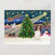Christmas Magic with a liver and white English Springer Spaniel. The star of Bethlehem lights the way for three wise men while Santa and his reindeer fly into the night. A dove and a snowman add to the symbols of the Christmas season.