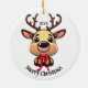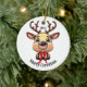 Xmas Reindeer, deer with antlers, cartoon graphic Ceramic Ornament