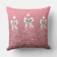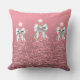 Xmas Sparkling Trees Blush Pink Faux White Bow Cushion