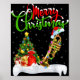 Xmas Tree Lights Santa Hat Musical Trumpet Christm Poster