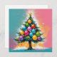 Xmas Tree with Colourful Shiny Ornaments Holiday Card