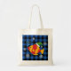 Xmas Tropical Fish Cartoon on Blue Buffalo Pattern Tote Bag