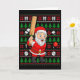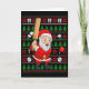 Xmas Ugly Sweater Style Santa Playing Cricket Chri Card