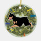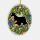 This Christmas themed agility ornament shows a wreath decorated with agility equipment and a cartoon style Doberman Pinscher jumping through the centre. Add your own text to the back of the ornament.