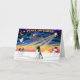 The sun rises revealing three wise men, a Christmas dove and a black and white English Springer Spaniel. The words say Peace on Earth. A wonderful Christmas message that also includes your dog in the celebration of the season.