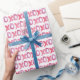 Sweetly romantic XOXO patterned wrapping paper makes a perfect choice for Valentine's Day treats! Design features a repeating pattern of X's and O's in pink and purple watercolor brushstroke typography for a trendy and festive look.