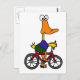 Hilarious cute yellow duck riding a bicycle cartoon design is unique and fun and a great gift idea. He's full of personality. Can also add custom text and change background (click customise, then edit, then background) when ordering.