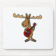 Hilarious cute moose playing a red guitar cartoon design is unique and fun and a great gift idea. He's full of personality. Can also add custom text and change background colour when ordering. Great for music lovers