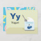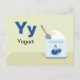 Letter Y is for Yogurt in our Alphabet Flash Card set. Get all 26 letters of the alphabet! A double-sided postcard that is great for memory games and teaching, geared for education, schools, teachers and homeschool for kindergarten and babies. All text is editable if you need to customise.