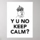 Y U No Guy comes to the Keep Calm and Carry On franchise. Featuring the well loved Y U No rage face that has become an internet meme. He is wearing the crown from the Keep Calm Poster and asking 'Y U No Keep Calm?' A more modern take on the Keep Calm and Carry On theme for the SMS generation.