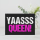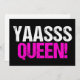 Yaasss Queen. Yass Queen is a funny pop culture quote used by sassy girls and diva drag queens. A cute black and hot pink card.