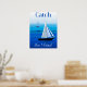 Poster art of yachts at sea, with the phrase "catch the wind", on a cobalt and cerulean blue ocean background