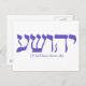 The name of Jesus written in Hebrew with a phonetic rendering beneath. Lettering is in Israel blue.