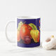 A vintage advertising label from the Yakima Valley of Washington. Tie-It-On Fruits label with the leaping dog is repurposed on a mug.